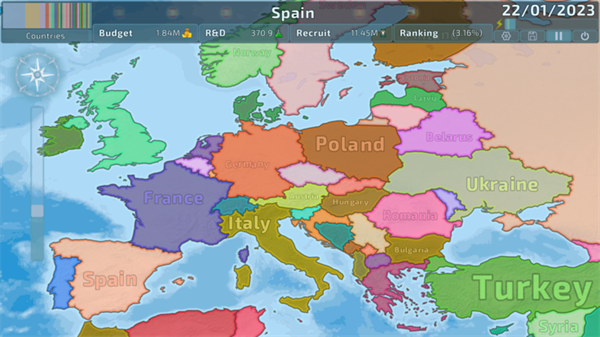 1、游戏采用全球真实地图,覆盖了大部分国家,每个国家的位置都非常清晰,给玩家一种沉浸感